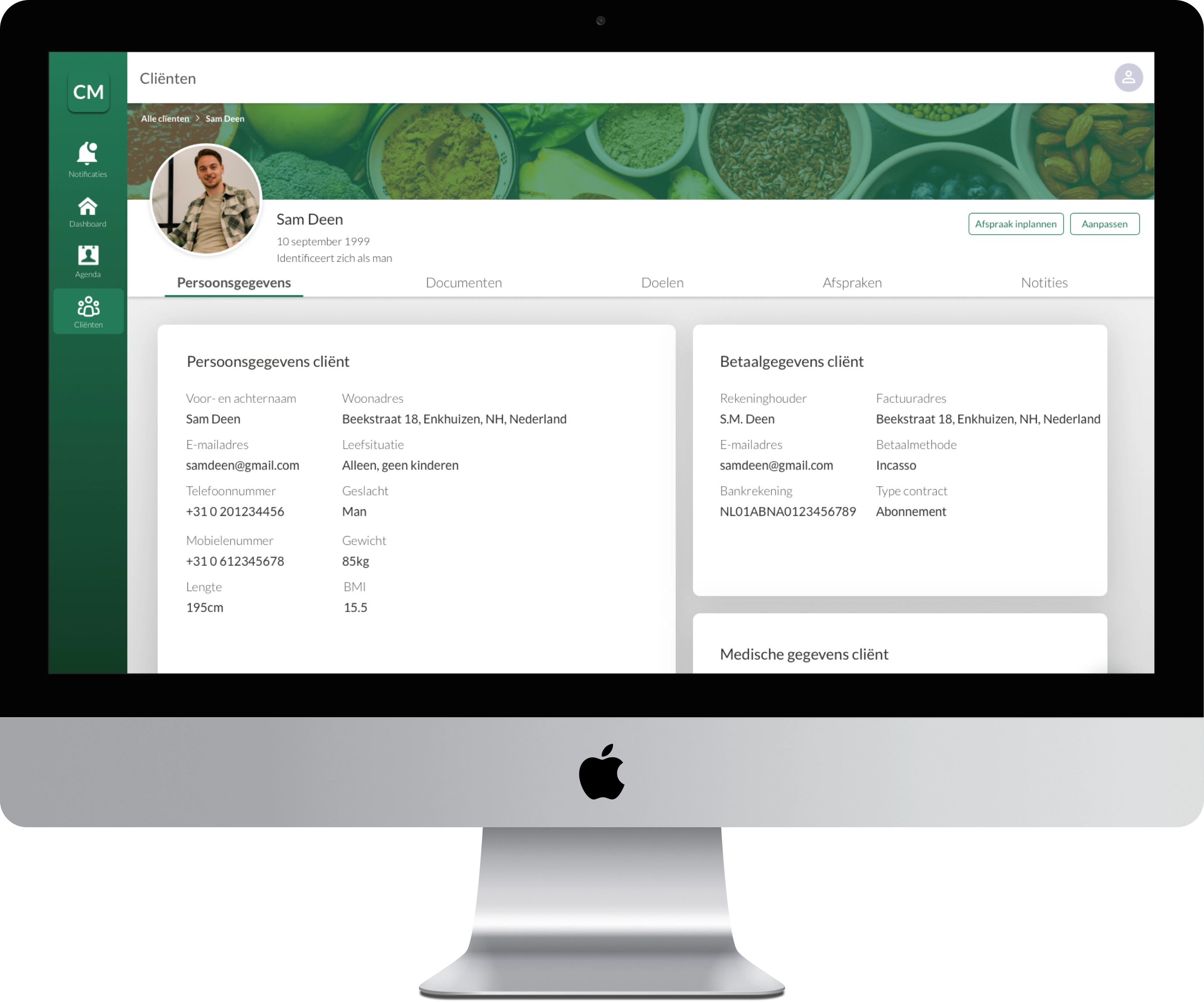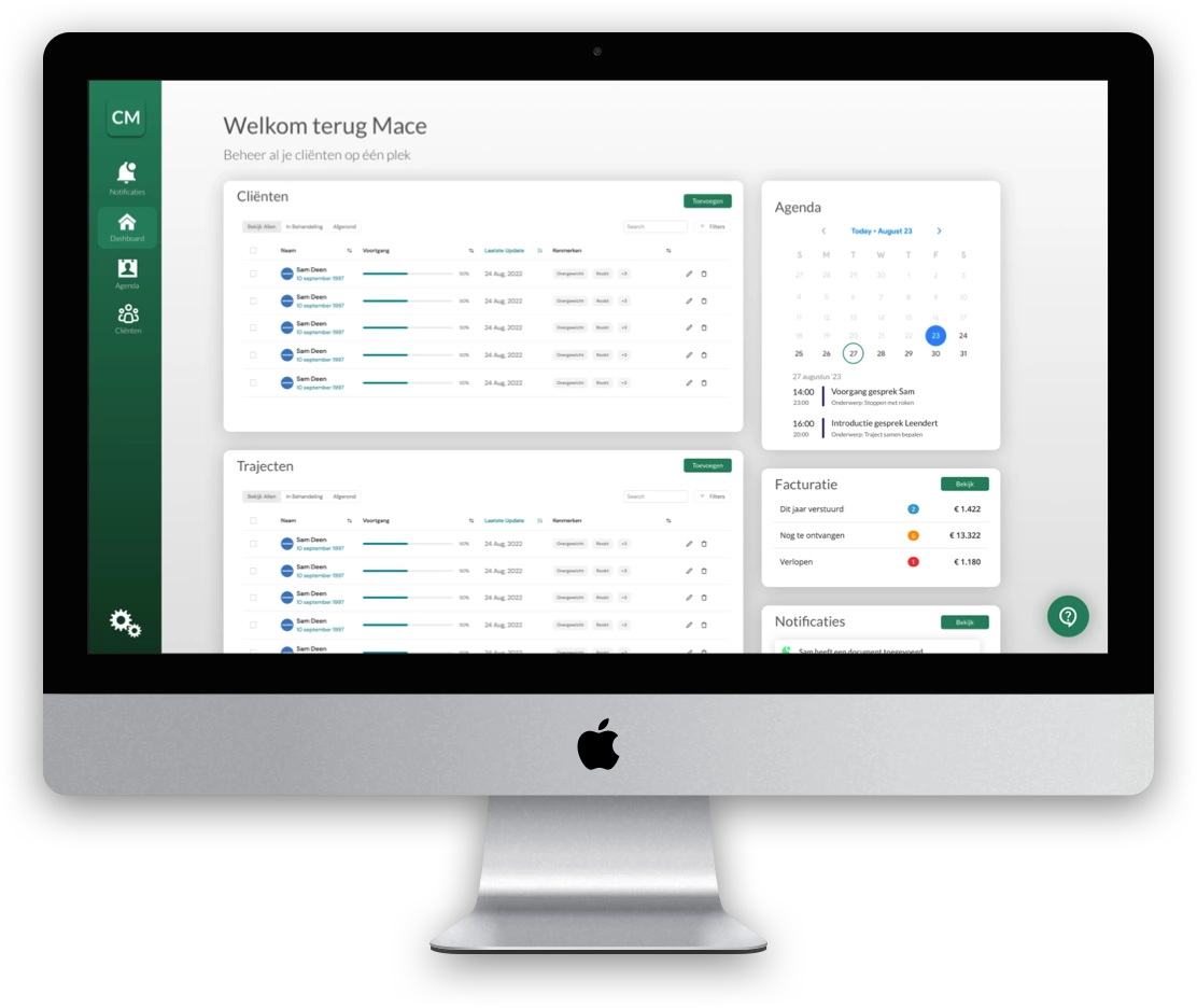 De applicatie bevat een CRM module zodat je alle cliënten op één plek kan beheren