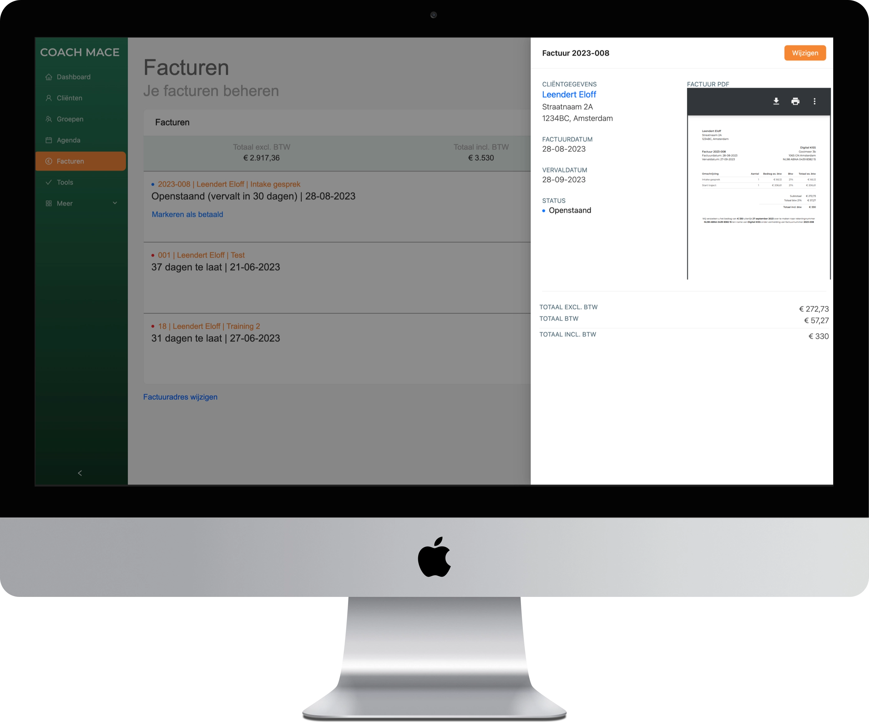 Met CoachMace kunnen alle facturen vanaf één plek automatisch verstuurd en beheerd worden